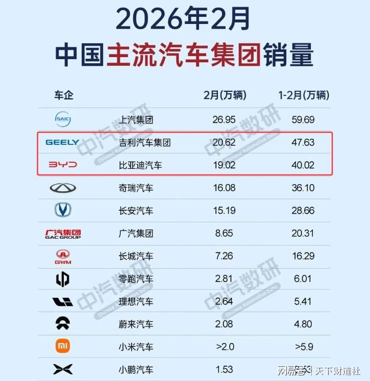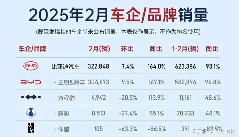 回顾2025年同期,比亚迪2月单月销量高达32万辆,是当时榜上唯一破30万的车企。1-2月累计销量62万辆,势头堪称强劲。