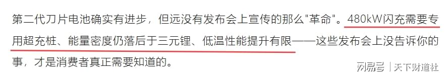 然而,也有市场观点认为,比亚迪发布的“颠覆性技术”,也难以说已经全面突破。