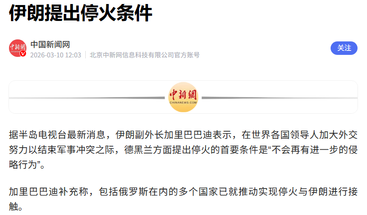 所以你看,特朗普现在有多难?他该如何收场?倒是有网友给他出了个主意,那就是让美国付出一些利益,请中国出面跟伊朗协调,调停这场战争,你认为还有更好的办法吗?