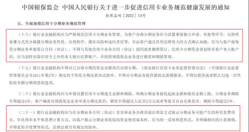 记者查阅相关规定发现,银保监会、中国人民银行联合下发的《关于进一步促进信用卡业务规范健康发展的通知》明确要求,银行业金融机构办理分期业务应当设置事前独立申请、审批等环节,以简明易懂方式充分披露分期业务性质、办理程序、潜在风险和违约责任等,并由客户通过具有法律效力的方式确认知晓。银行业金融机构应当在分期业务合同(协议)首页和业务办理页面以明显方式展示分期业务可能产生的所有息费项目、年化利率水平和息费计算方式。但实际操作中,部分银行客服并未严格履行该规定,而是通过模糊话术、避重就轻的方式误导消费者。