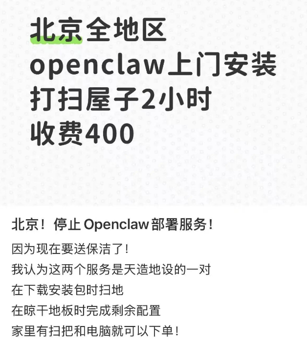 在这一轮“龙虾热”里,第一批卖出去的铲子,就是安装部署的服务。