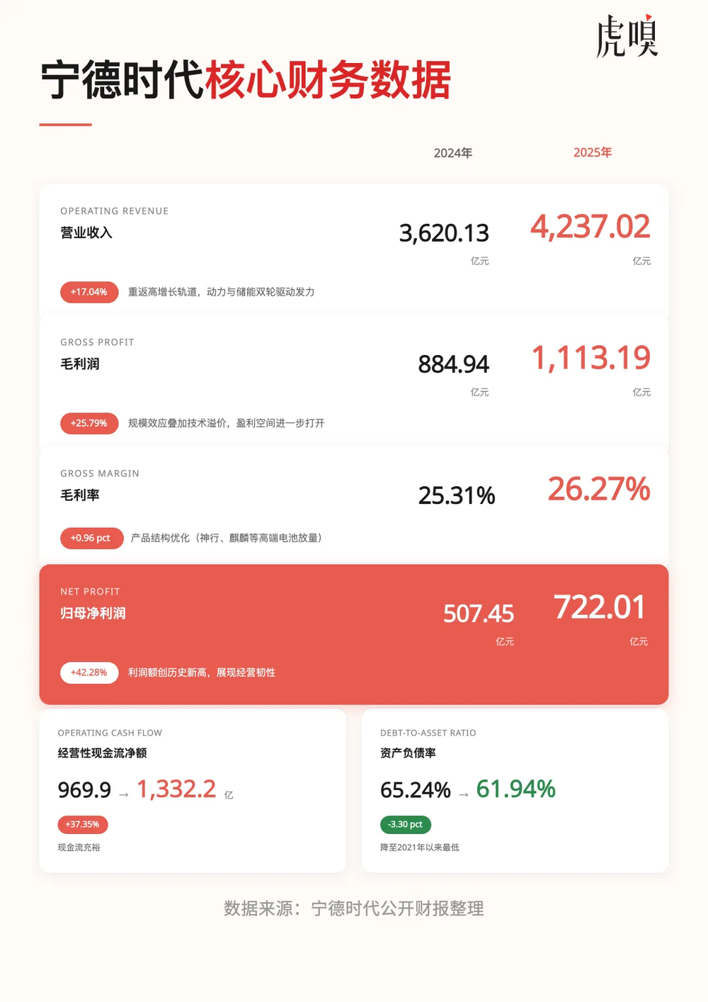 宁德时代公布2025年财报后,市场习惯性地寻找那些跳跃的数字:营收增长多少,利润增加几何,现金流是否充沛。这些数字都很漂亮,但真正值得追问的不是宁德时代赚了多少钱,而是为什么在全行业充满焦虑的2025年,它依然保持从容。