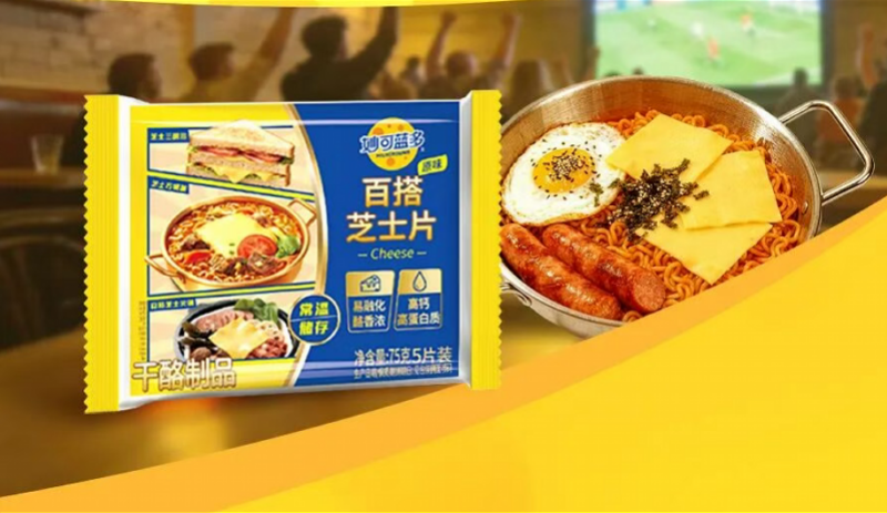 从成效来看,体育营销的落地已经显现出清晰的产品转化路径。针对即将到来的2026年世界杯,妙可蓝多同步进行了产品布局和市场营销。据了解,面向儿童群体,妙可蓝多推出了干酪添加量超过65%的“捷捷高奶酪小金袋”;面向广大的成人球迷,则推出了可常温保存的“百搭芝士片”,精准切入深夜看球配泡面、汉堡的夜宵场景。