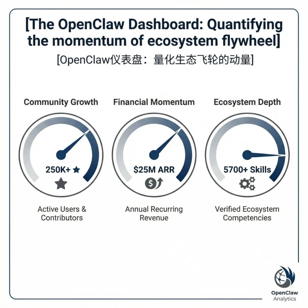 与此同时,治理结构已完成机构化转型——创始人Peter Steinberger加入OpenAI,项目移交OpenAI基金会管理,原有的创始人主导争议随之消解。商业化方面,OpenClaw企业版2026年Q1公告ARR为2500万美元,腾讯云企业版年化收入超5000万美元,ClawHub生态市场月交易额达120万美元。上述数据共同构成一个基本事实:OpenClaw的规模扩张与商业化验证,已同步发生。