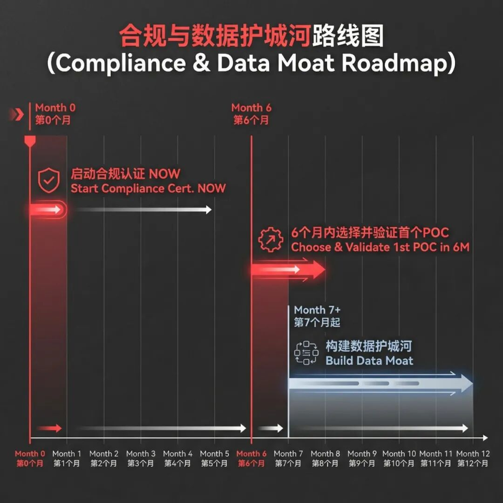 基于上述判断,当前阶段应当立即推进两件事:启动等保2.0认证流程,以及在金融或工业制造等垂直领域中选定单一场景完成首个ROI可量化的POC。这两件事的先后顺序可以并行,但不可替代。