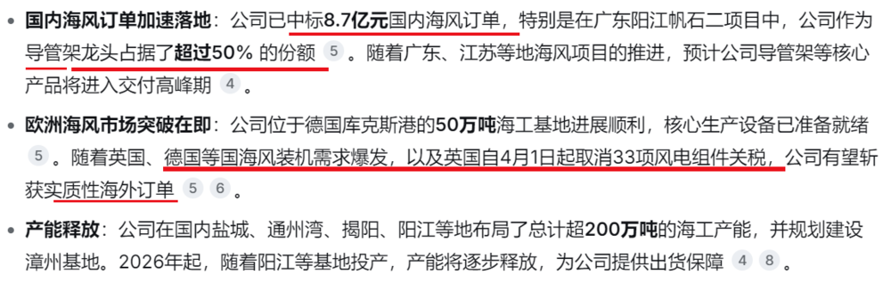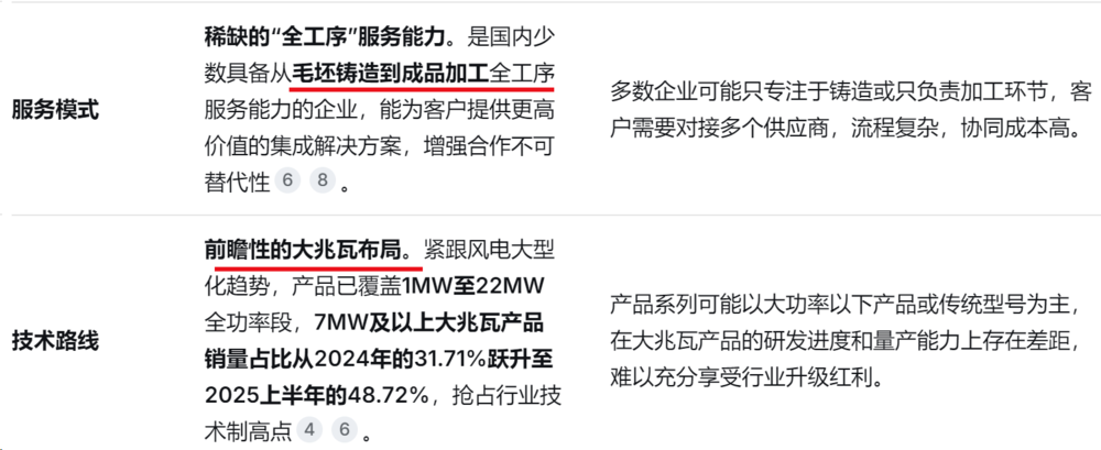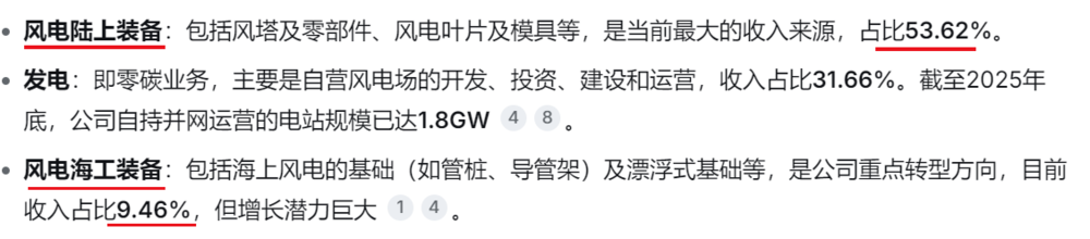 辅助业务:注塑机厚大专用部件是公司的第二大业务(占比约10.87%),主要服务于全球注塑机龙头海天塑机,形成与风电主业互补的“双主业”格局,以增强抗风险能力。