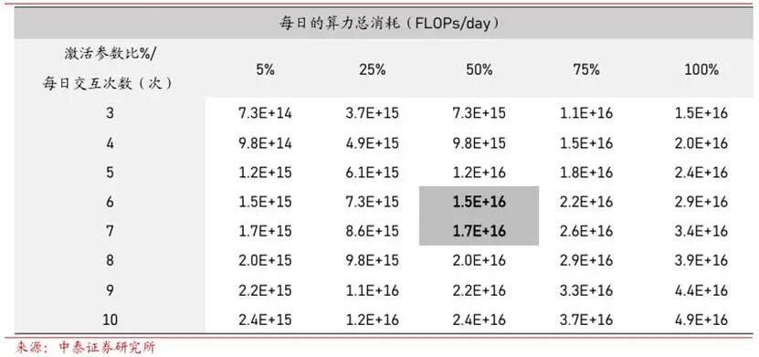 随着Agent应用逐渐进入生产力场景,Token消耗规模快速增长。中泰证券的研究通过特定假设(如用户交互Tokens覆盖率为60%),建立了Tokens消耗与算力需求(以H100显卡数量计)的量化模型。通过测算可以得出:一个日活过亿的AI应用,每日可能需消耗相当于14.15万张H100的算力。