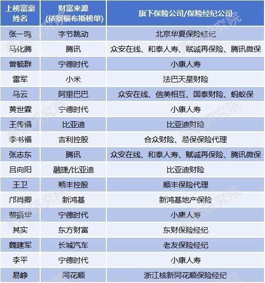 前50位富豪中,有17位涉足保险业务,占比超过三分之一。这些富豪旗下有一家甚至多家保险公司牌照或保险经纪公司牌照。以设立保险公司、收购保险经纪牌照、投资互联网保险平台等多种方式从事保险业务。
