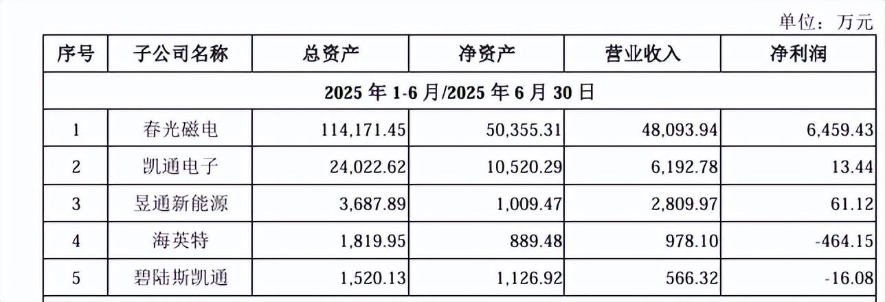 截至招股说明书签署日,春光集团拥有4家一级全资子公司,1家二级全资子公司;其中仅春光磁电有大额的净利润收入。