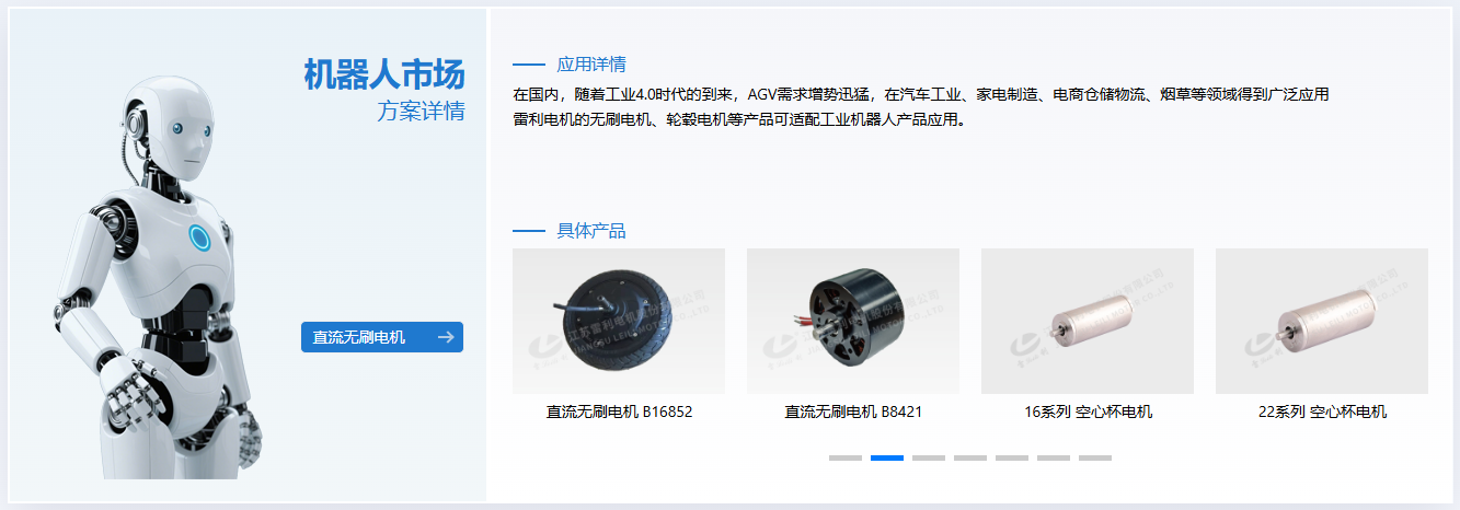 据介绍,目前,在工控领域的具身智能产业,江苏雷利基于自身在微电机、精密传动机构、智能化运动控制组件等领域的积累,积极开发人形机器人、四足机器人、特种机器人的核心零部件产品。其中,四足机器人用关节电机及齿轮箱组件已经在部分客户小批量产。在人形机器人领域,公司自主研发空心杯电机、精密齿轮箱、T型丝杆、滚珠丝杠、行星滚柱丝杠、无框力矩电机等产品。