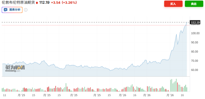 伊朗战争进入第三周,全球原油市场出现罕见的"期现脱钩":布伦特原油基准期货飙升逾50%至约112美元/桶,但现货市场真实成本远不止于此——航空煤油等成品油价格已突破200美元/桶。