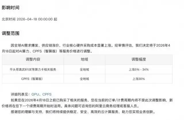 前几天,阿里云宣布涨价