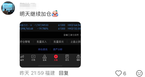 有人说看财报阿里巴巴已经起飞,下面有人追评,是往下起飞嘛?