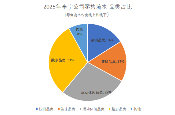 2025年李宁公司零售流水品类占比。