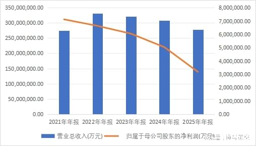 营业收入2.78万亿元,体量依然惊人;但净利润324.76亿元,同比下滑近四成。