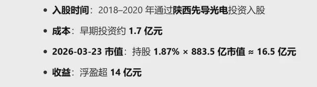 这里面还有个关键角色——陕西国资。当年公司困难的时候,当地基金就投了1.7个亿,哪怕股价低迷、公司亏损也没跑路,一直拿到现在,赚了几十倍回报。这也成了地方扶持硬科技企业的经典案例。