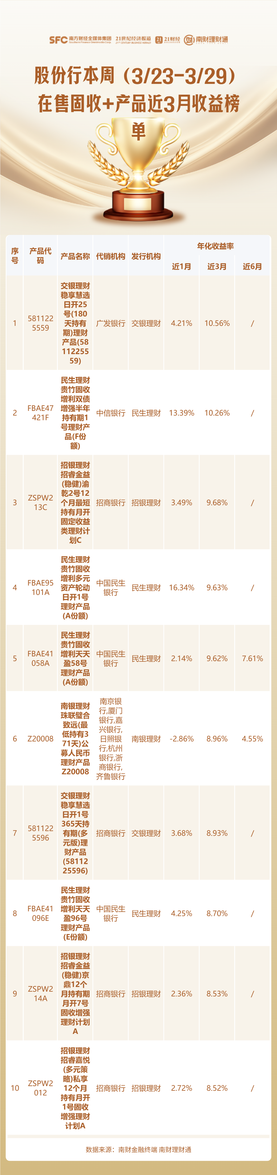 为提供有效的选品参考,榜单展示了产品近一月、近三月及近六月的年化业绩,并按照近三月年化收益率进行排序,以此反映其在近期市场波动中的多维度收益表现。