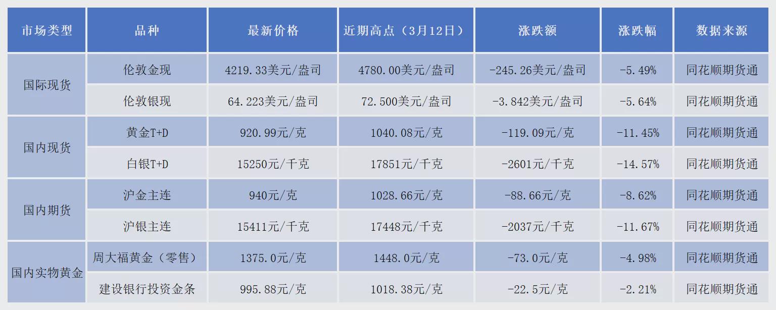 此次金价连跌,并非局部市场的短期波动,而是全球贵金属市场的同步承压,无论是国际现货、期货,还是国内实物黄金、投资黄金,均出现不同程度的大幅回调。