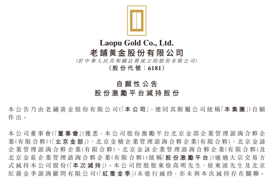 不过,老铺黄金也说了,控股股东没减持。