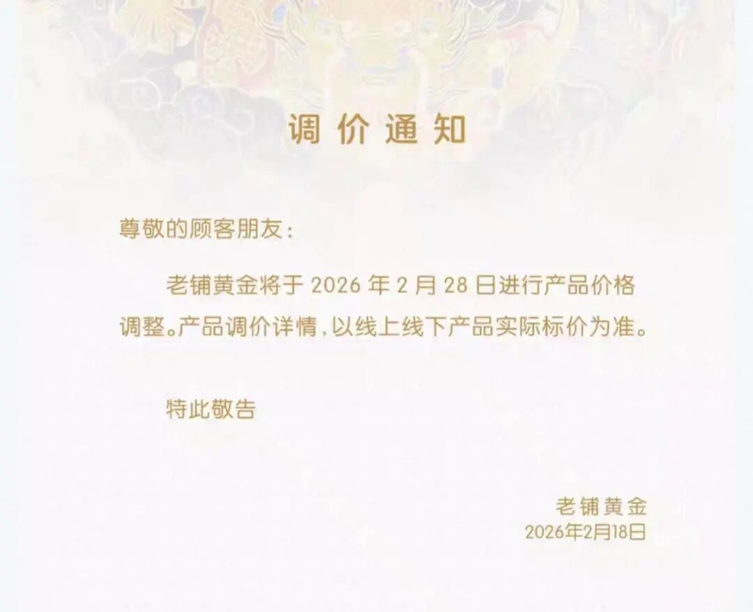 考虑到老铺黄金在 2月底刚刚涨完价,涨价 幅度20%至30%不等。