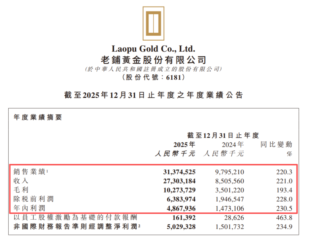 就在刚刚,老铺黄金发布2025年全年财报。
