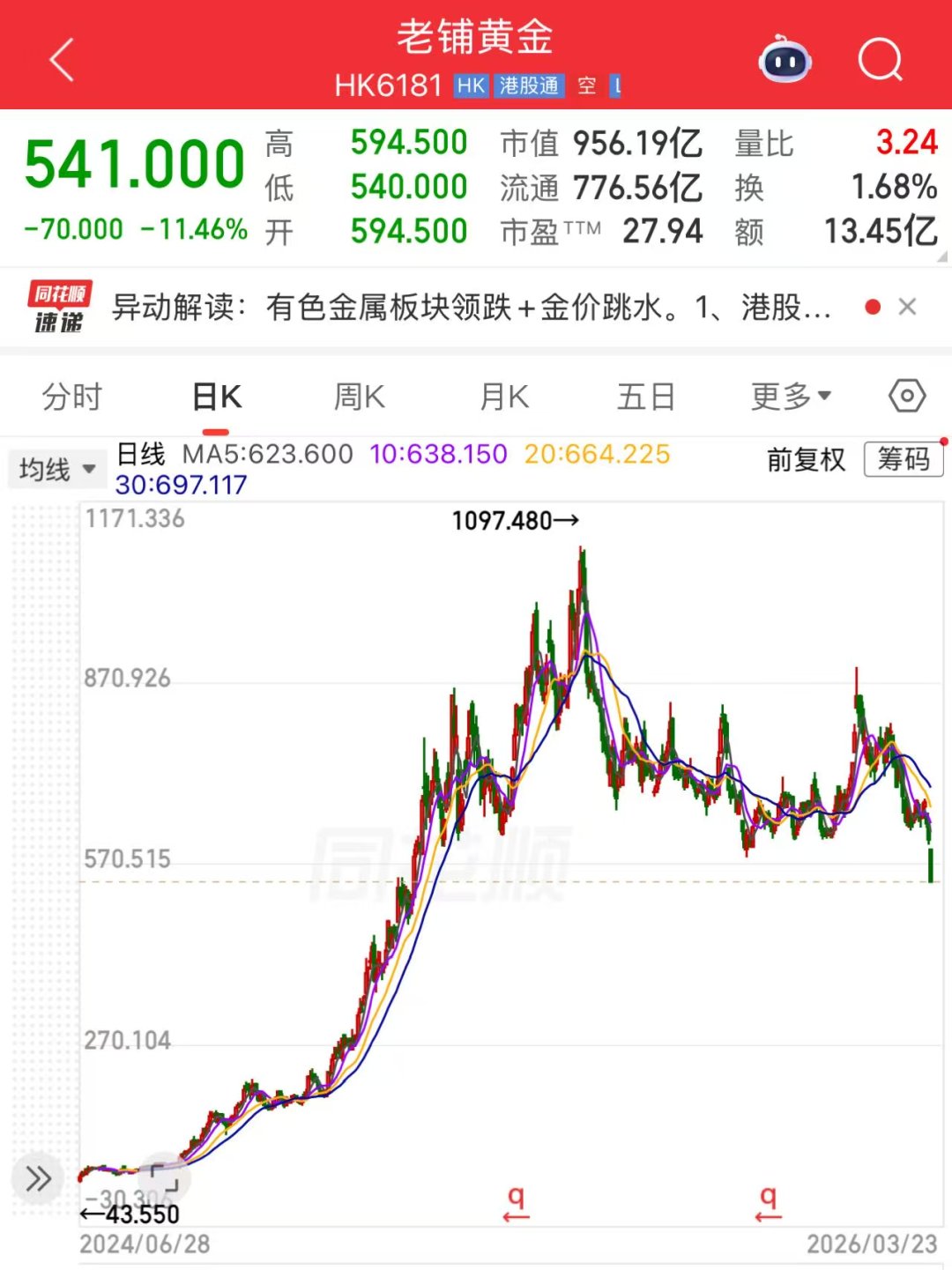 有意思的是,好像老铺黄金的业绩越好,股价反而越跌?!