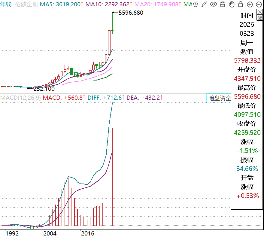 3月23日,金价继续下行,一度下探至4097.51美元/盎司。