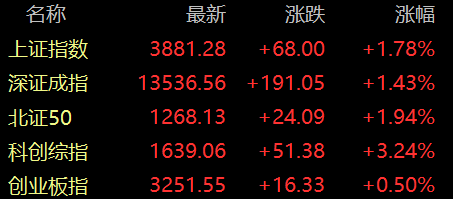 3月24日,A股三大指数集体收涨。沪指涨1.78%,深成指涨1.43%,创业板指涨0.5%,科创综指涨3.24%。全市场超5100只个股上涨。