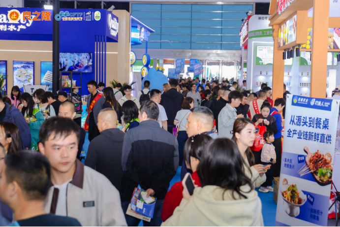 湖北小龙虾产业控股、国联、恒兴、何氏蹦蹦鱼、良之隆、虹宝水产、海魂水产、美佳集团、逮虾记、宏方水产、快鱼供应链、翔泰渔业等水产企业,高金食品、味知香食品、新聪厨食品、菜帮主食品、易太食品、成都希望食品、胖嘟嘟食品、好事多食品、瑞发德食品、凤祥食品、天农食品、乐寿鸭业等肉类食材企业,带来小龙虾、白对虾、黑虎虾、帝王蟹、虾滑、牛蛙、黑鱼片、巴沙鱼、罗非鱼、午餐肉、梅菜扣肉、扇子骨、小酥肉、肥肠、鸡排、烤鸡等爆款食材,凭借新鲜品质和高性价比成为全场焦点,吸引采购者争相品尝,展台后洽谈合作的身影络绎不绝,合作意向不断达成。