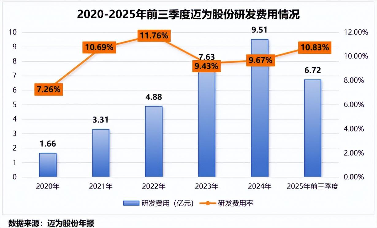 2022-2025年前三季度,公司累计投入研发费用28.74亿元,研发费用率维持在9%以上,远高于捷佳伟创、奥特维等同行。