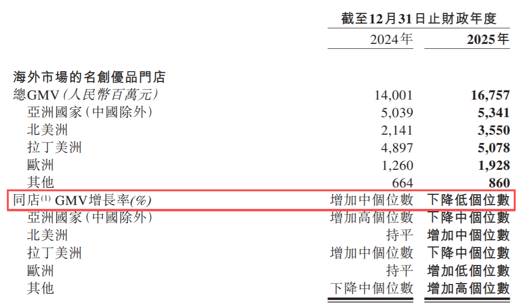 但海外门店的同店GMV,2025年却下降了。