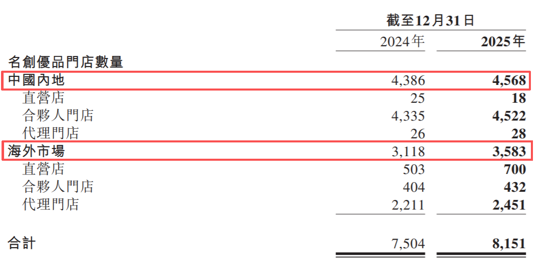 截至2025年底,名创优品在海外的自营门店数量已经达到700家。