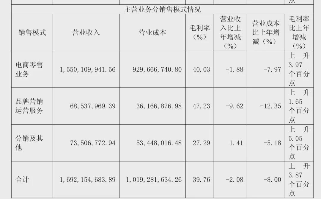 这一断崖式下跌的背后,是传统代运营业务的收缩。丽人丽妆在财报中解释称,“受2024年部分合作品牌调整运营模式、终止合作等因素持续影响,公司营业收入继续承压。”
