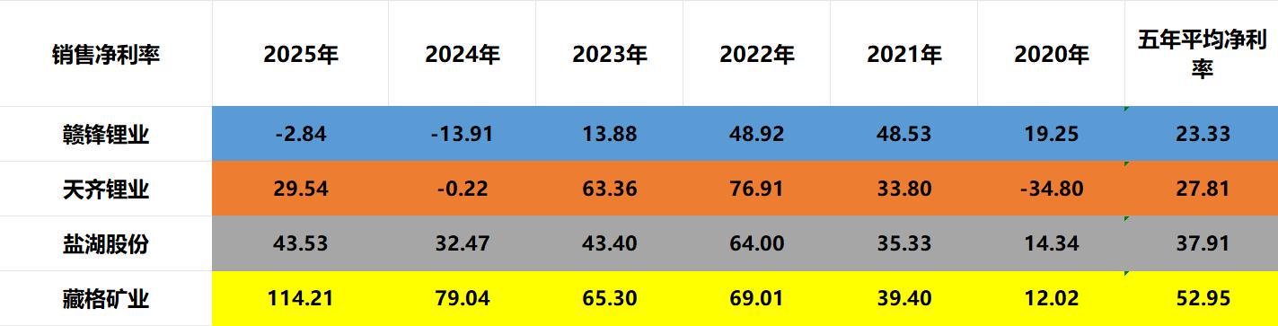 最新三季度盈利能力:藏格矿业>盐湖股份>天齐锂业>赣锋锂业