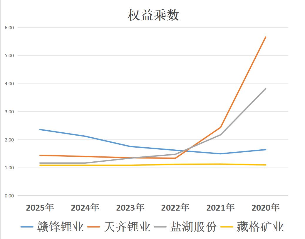 最新三季度财务杠杆:赣锋锂业>天齐锂业>盐湖股份>藏格矿业