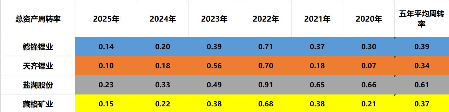 最新三季度营运能力:盐湖股份>藏格矿业>赣锋锂业>天齐锂业