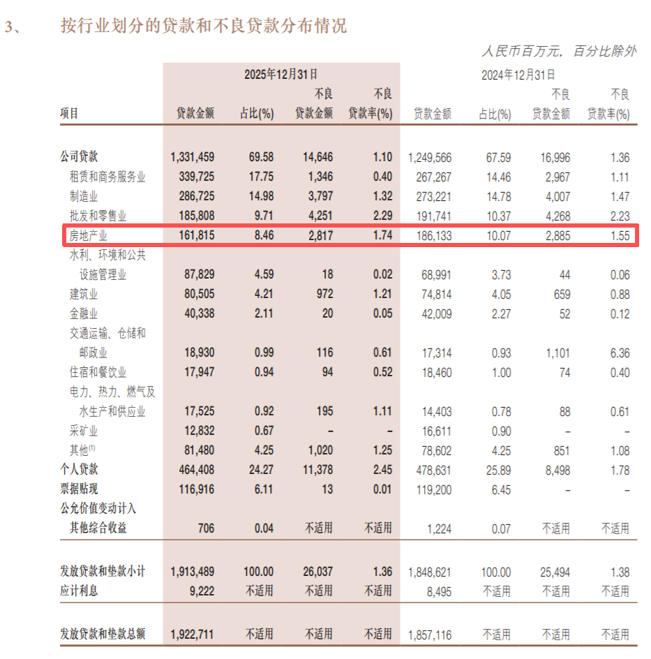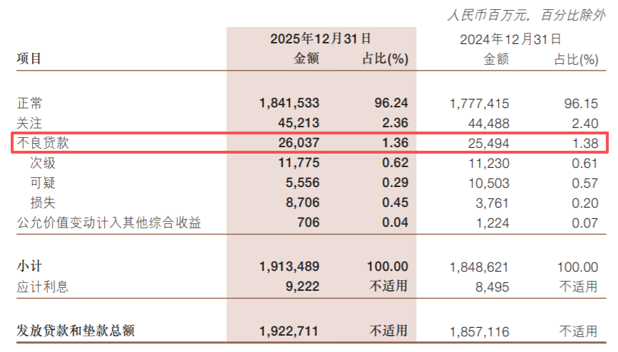 虽然从不良率来说,截至2025年,浙商银行的不良贷款率是下降的,从1.38%降到来了1.36%。