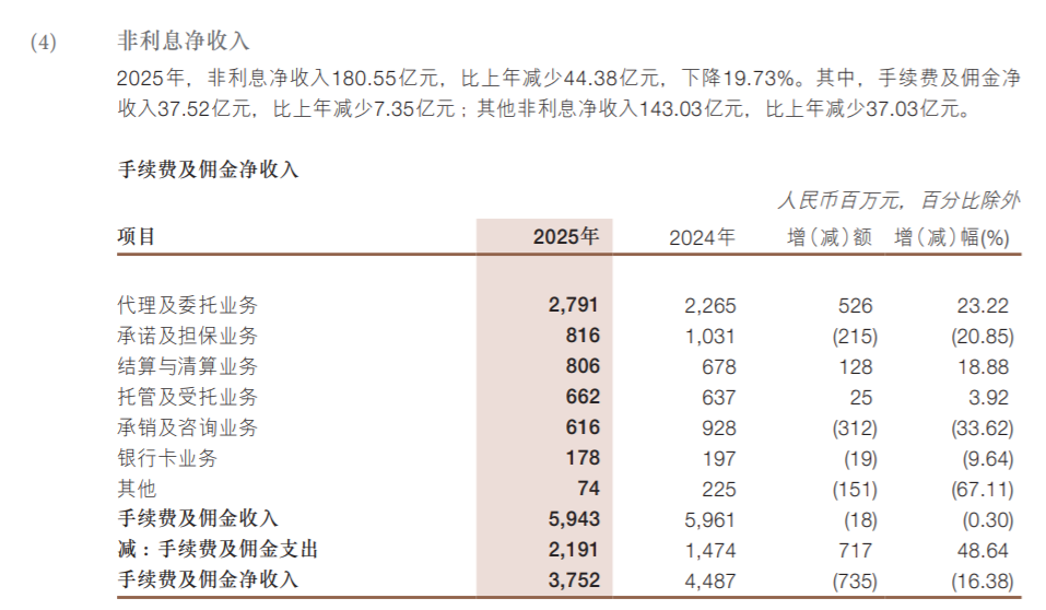 其中,2025年,浙商银行的手续费和佣金收入,也少了7个多亿。