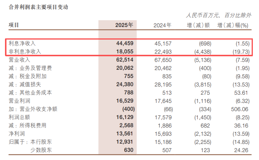 猫姐看了一下,2025年,浙商银行的利息净收入和非利息净收入,都是下滑的。