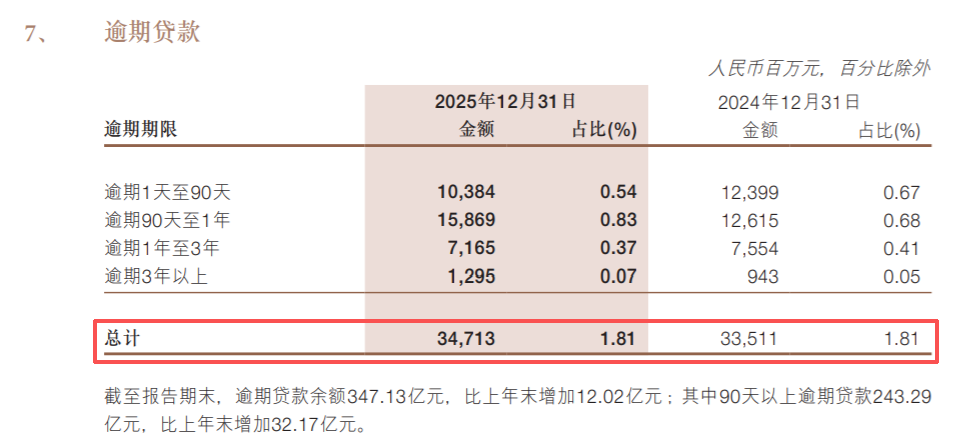 还有逾期贷款金额,从335.11亿又增加到了347.13亿,逾期率依然达到1.81%。
