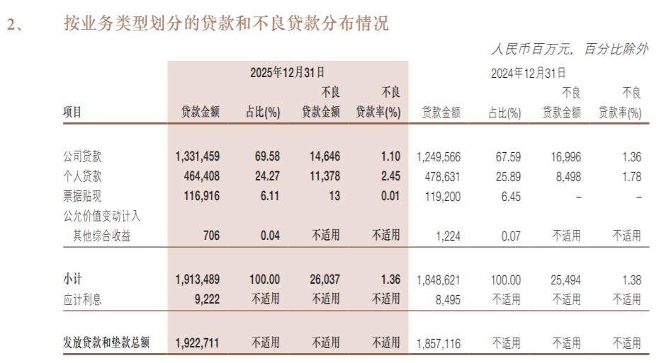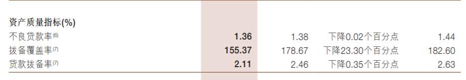 其中,公司贷款的不良率从1.36%下降到了1.10%;