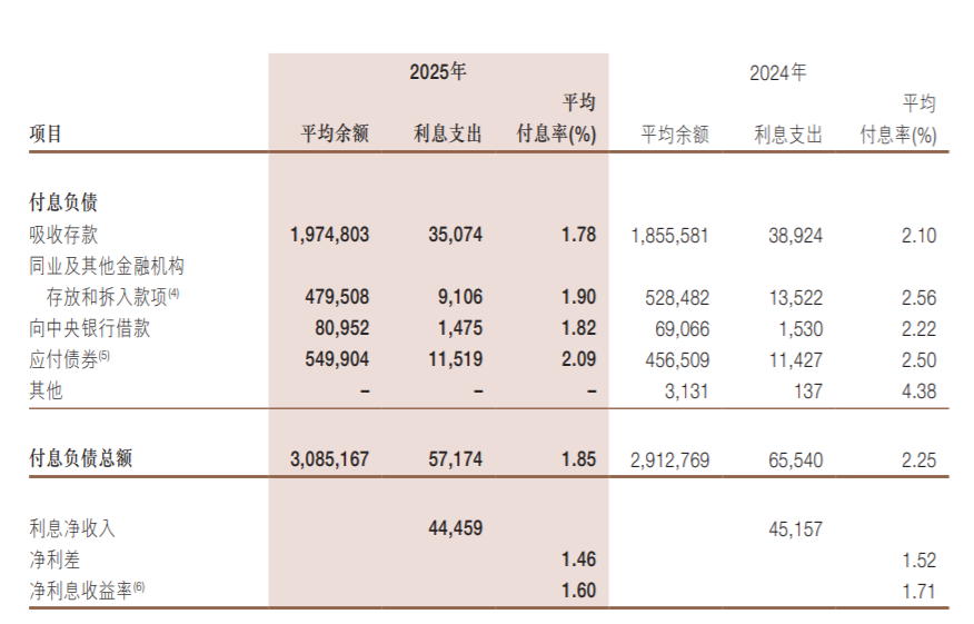 好在存款利率也是下滑的,所以存款等付息资产产生的利息支出,也是减少的。