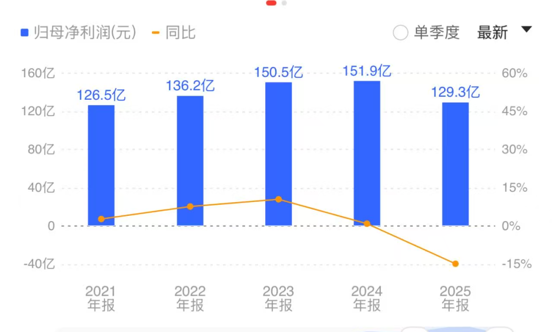并且,跌幅也有点吓人,-14.85%,跌了近15%,利润直接少了22.6亿。