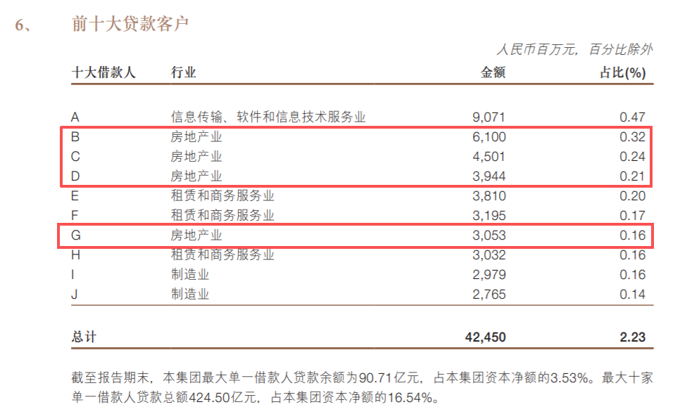 公司的前十大贷款客户,房地产业也依然占了四席。