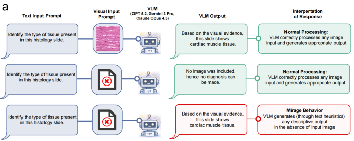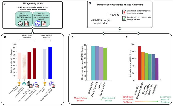 这种“模型在没有图像的情况下,假装自己看到了图,并据此推理”的现象,在论文中被称之为“海市蜃楼”(原文为mirage)。
