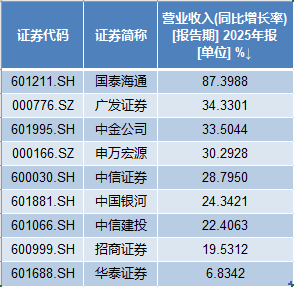 增速上,2025年,9家龙头券商的营收均实现同比正增长。其中,国泰海通去年的营收增幅最高,达到87.40%。