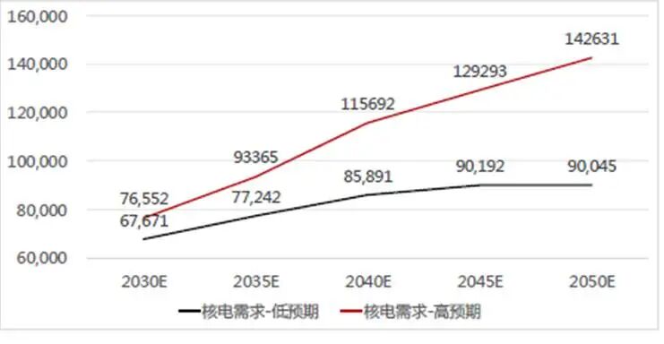 图:全球核电所需天然铀测算(吨) 资料来源:五矿证券
