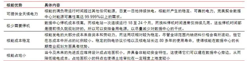 图:核电为数据中心供电的优势 资料来源:中信证券