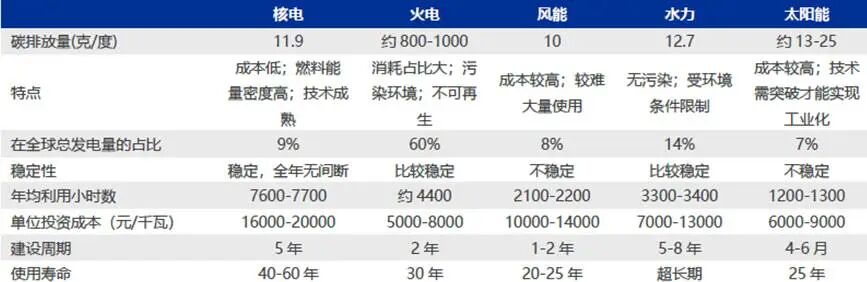而传统能源和新能源,都没法完美满足这些需求:火电碳排放高,不符合低碳目标;水电受来水影响,稳定性不足;风电、光伏间歇性强,需要大规模储能配套,成本高昂,都不能彻底解决问题。