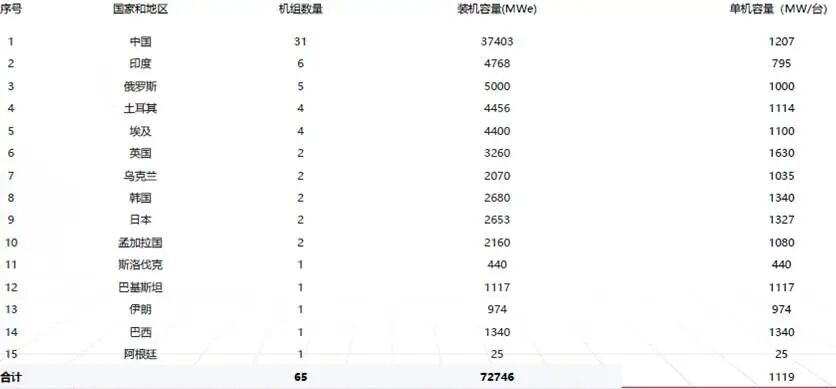但增长势头迅猛,中国已成为全球核电在建规模最大的国家。截至2025年11月底,中国在建核电机组31台,装机容量37403MW,在建机组数量和装机容量均占全球的近一半。